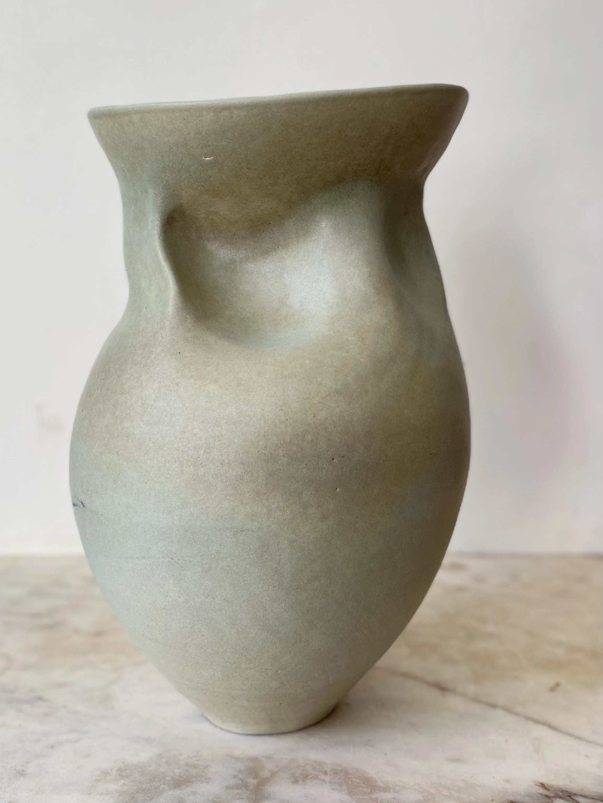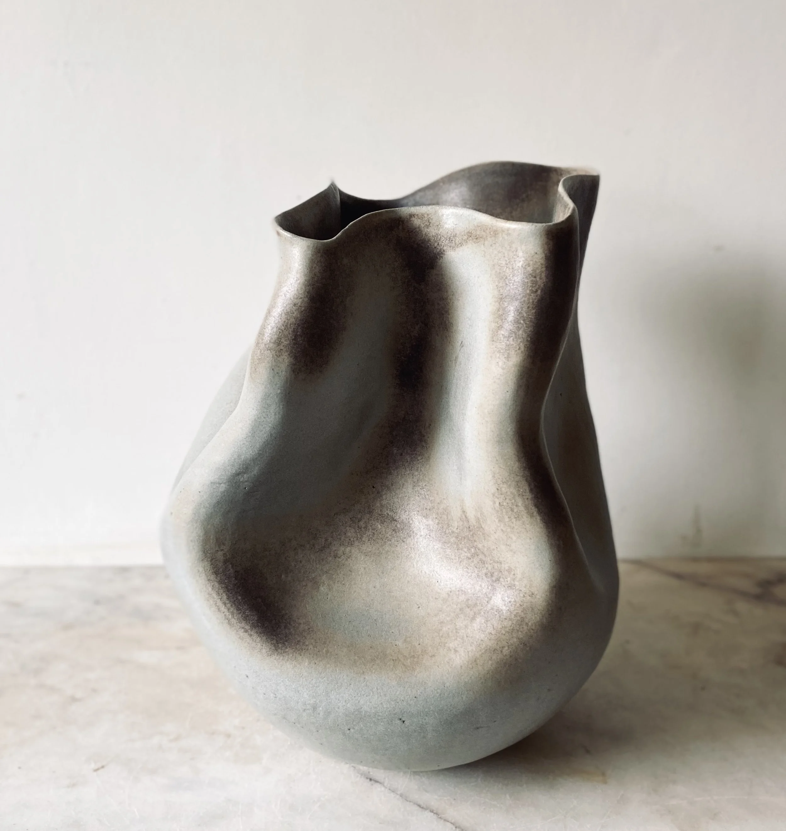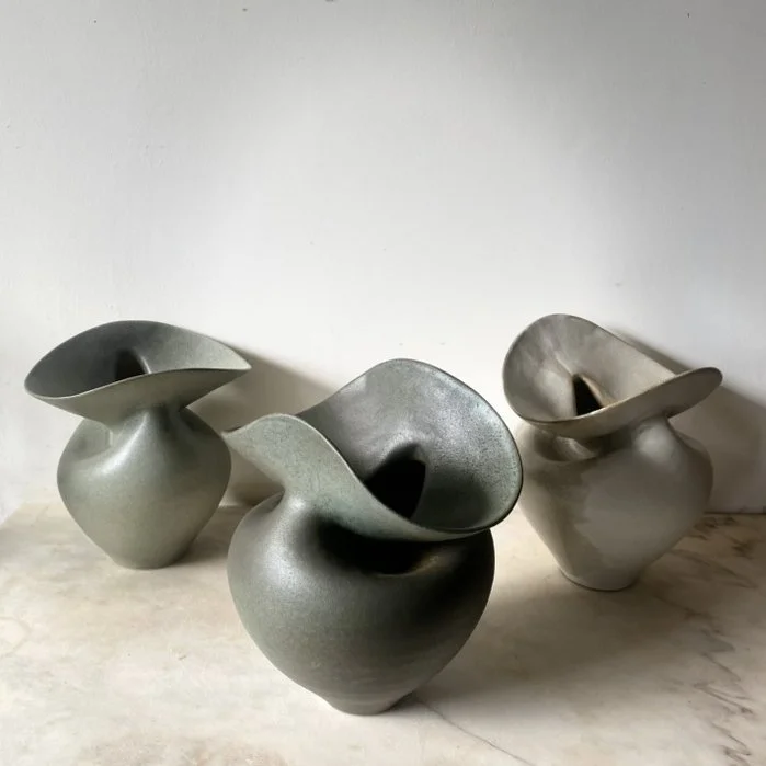 The Deche vase is inspired by the Ardèche region of south-west France, an ancient landscape with the river at its centre. Steep cliffs rise above the water, and within the rock lie caves where early Homo sapiens once lived. Hidden for thousands of years beneath fallen stone and tangled undergrowth, their entrances remained concealed from view.